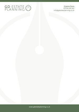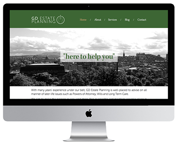 Logo, business cards, letterhead and website for Edinburgh start-up GD Estate Planning. The website can be found at